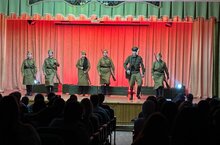 Сегодня в нашем колледже прошел показ спектакля "Сызылып таннар атканда" по мотивам повести Б.Васильева "А зори здесь тихие" в исполнении актеров труппы Атнинского татарского государственного драматического театра им. Габдуллы Тукая.