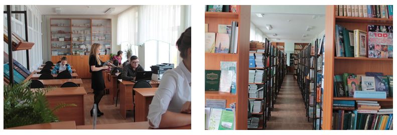 В колледже функционирует библиотека и читальный зал на 30 посадочных мест. Общая площадь библиотеки – 104 кв.м. В читальном зале имеются 30 нетбуков и 1 компьютер с выходом в интернет.