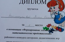 Арча районында тәрбиячеләр арасында "Уен- мөһим эш" конкурсында тәрбиячебез Нигъмәтҗанова Л.А. математика эшчәнлеге буенча дидактик уен тәкъдим итеп, 3 урын яулады. Хезмәттәшебезне уңышлары белән котлыйбыз, алда да иҗади уңышлар телибез!
