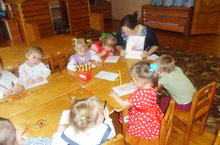 Кечкенәләр төркемендә рәсем эшчәнлеге вакытында бар да тырышып төсле йомгаклар ясадылар.
