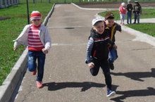 Балалар бакчасындагылар "Хәрәкәттә бәрәкәт" девизы астында җәяүле йөгеректә.