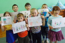 Балалар бакчасындагы нәниләр "Безнең гаилә - матур гаилә" дигән конкурска рәсемнәр ясап алып килделәр.