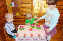 Бакчабызда балаларны һәряклап тәрбияләү өчен барлык шартлар да булдырылган. Шөгыльләрдән тыш, тәрбия сюжетлы уеннар аша бара. Мәктәпкә әзерлек төркемәнә йөрүчеләр кечкенәләр төркеме белән "Ашханә" дә уйнауны аеруча ярата.