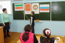Мәктәптә укучылар өчен "Җәмгыять, дәүләт һәм без" дигән темага презентация күрсәтелде. Укучылар флаг, символлар, герб, дәүләт структурасы турында белемнәрен искә төшерделәр, яңа мәгълүмат тупладылар.