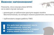 БПЛА һөҗүме очрагында пилотсыз очкычлар очышының видеоларын халыкка җиткерергә ярамый. Бу турыда кисәтүләр булып тора. Һәм һава һөҗүменә каршы оборона эшләү видеосын интернет киңлекләренә урнаштырмау мөһим. Бу аларның урнашу урыннарын ача һәм Татарстан Республикасы гражданнарының иминлегенә куркыныч тудыра.