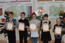 26 нчы март көнне мәктәбебездән 2 укучы Бөек Җиңүнең 70 еллыгына багышланган районкүләм шигырь сөйләүчеләр конкурсында катнаштылар. 2 класс укучысы Газимов Рөстәм Ф.Кәримнең "Ватаным өчен" шигырен, 4 класстан Галәветдинова Алсу М.Җәлилнең "Вәхшәт" шигырен сөйләделәр, катнашучы сертификатына ия булдылар. Аларга зур рәхмәтебезне белдерәбез!