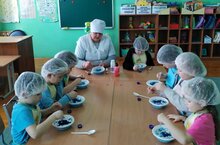 Тема: юка боз Максат: 1)Тәҗрибә аркылы язын сулыклардагы бознын юка булуын, ярылып китәргә мөмкинлеген, язгы куркынычсызлык кагыйдәләрен, сак булырга кирәклеген анлату. 2) Сунын үзлекләре белән танышуны дәвам итү. 3)Кызыксынуларын, игътибарлыкларын, күзәтүчәнлекләрен үстерү. Җиһазлау: сулы тәлинкә, кашык, сыек сабын, присыпка, буягыч, таякчык. Суга буягыч салабыз, аны яхшылап болгатабыз, зәнгәр сунын өстенә присыпка сибәбез, таякчыкны сыек сабынга (савыт-саба югычка да момкин) тыгып алабыз һәм су өслегендәге присыпкага төрткәлибез. Су өслеге боз ватылып киткән кебек ярыла.Язгы бознын куркыныч икәнлеген балалар тәҗрибә аша белделәр.