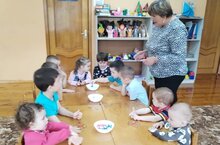 "Суның үзлекләре белән танышу" 10.10.2025 Бүген әйләнә-тирә шөгылендә сунын кайбер үзлекләре белән таныштык. Кәгазьнен суны сендергэнлеген анладык, шунын нәтиҗәсендә бөтереп ясаган чәчәкләребезнен таҗлары ачылуына игътибар иттек. Балалар бик кызыксынып карадылар, үзләре дә эшләп карадылар. Бу эш балаларга бик ошады.
