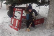 Любимое занятие детей- труд на участке. С большим удовольствием они расчищают игрушки от снега.