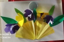 - Формировать умения наклеивать детали цветка из цветной бумаги, правильно располагать композицию на листе бумаги, аккуратно работать с бумагой и клеем;