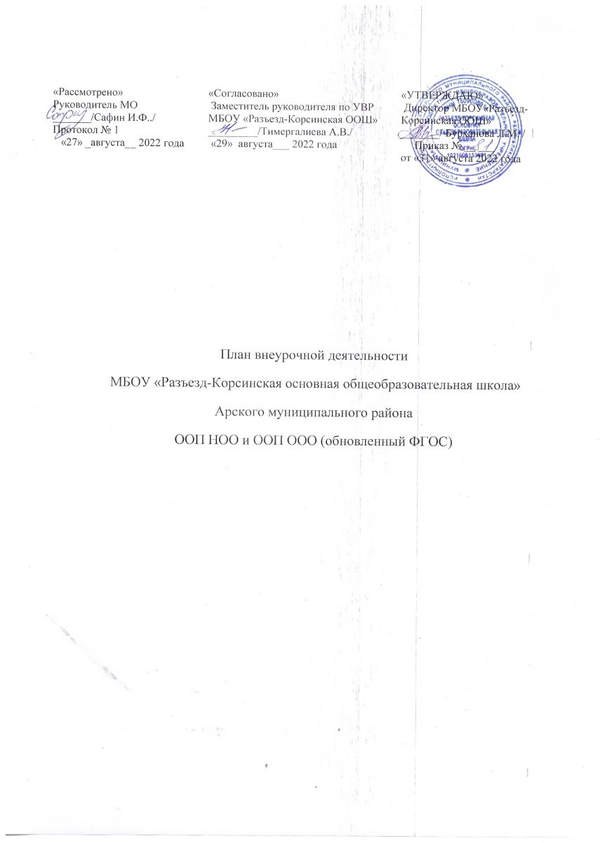 План внеурочной деятельности МБОУ Разъезд Корсинская ООШ на 2022-2023 учебный год