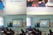 Сегодня в нашей школе прошло очередное занятие цикла «Разговоры о важном», посвященному Дню музыки. Ребята 1-2х классов научились описывать словесно и представлять в движении образы, возникающие при восприятии музыки; сравнивать звучащую музыку с изображающими ее движениями; участвовать в коллективном обсуждении. Занятие прошло в форме викторины и групповой работы. Ребята познакомились с изобразительными возможностями музыки посредством пьесы К. Сен-Санса «Карнавал животных», а также с творчеством великого русского композитора П. И. Чайковского. Урок для ребят 3-4х классов был направлен на то, чтобы привить детям интерес к музыке, желание слушать и фантазировать во время звучания различных музыкальных произведений. Занятие прошло в форме музыкальной гостиной – с использованием видеофрагментов и мультимедийной презентации.
