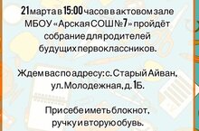 21 марта в 15.00 часов в актовом зале МБОУ "АСОШ №7" пройдёт собрание для родителей будущих первоклассников.