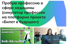 В рамках федерального проекта "Профминимум" 25 апреля в 9 классе прошло внеурочное занятие по теме "Пробую профессию в сфере медицины". На занятии учащиеся познакомились с новой профессией - биомедицинский инженер. Школьники прошли моделирующую онлайн-пробу на платформе проекта «Билет в будущее» в сфере медицины. Классный руководитель Шавалиева Л.Ф.