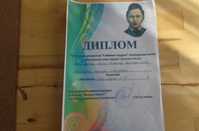 Быел да район буенча"Сөйкемле Шүрәле" конкурсы оештырылды.Бу конкурста безнең бакчадан 5 яшьлек Хасанова Ильзирә катнашты һәм менә шушындый диплом белән бүләкләнде.