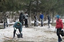 Бүген дәресләрдән соң мәктәп укучылары һәм укытучылары мәктәп тирәсендәге карларны тарату, чүпләрдән арындыру максатыннан өмәгә чыктылар. Бөтен кеше тырышып эшләде. Эшләнгән эшкә, чистарган ишегалдына карап куандык. Әле алда эшлисе эшләр бик күп.