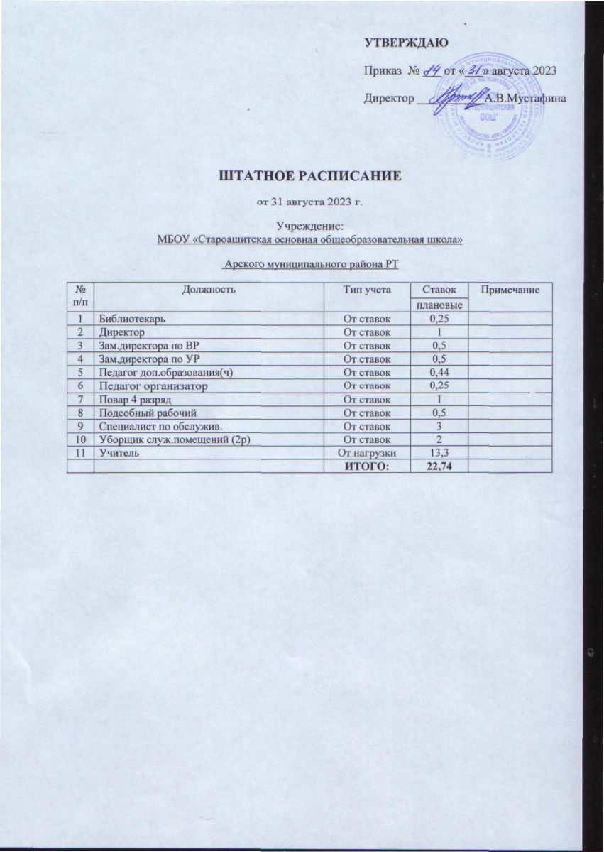 Адрес: 422030, РТ, Арский район, c. Старый Ашит, ул. Школьная, д. 7\