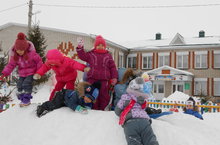 Есть снежок, да горки нет…Снег собрать на ровном месте