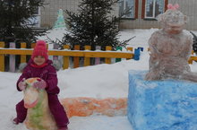 Украшаем территорию детского сада.Лепим из снега фигурки.