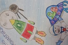 В этом году весь мир отметит замечательный юбилей - 60 лет со дня освоения космоса человеком. Мы особенно гордимся тем, что первым человеком , совершившим космический полет был наш соотечественник Юрий Гагарин. В нашей школе дети с удовольствием подключились к конкурсу " Рисуем космос".