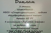 МБОУ "Старочурилинская СОШ" заняла 3 место в районном этапе республиканской акции "Эковесна -2020".Молодцы!