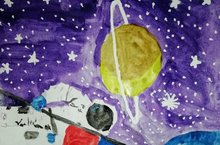 Находясь на дистанционном обучении учащиеся не забывают про рисунки ко Дню космонавтики.