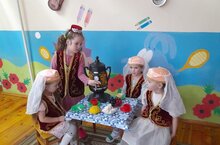 Балалар белән "өч кыз "әкиятен сәхнәләштердек.Алдагы көндә әкиятнең эчтәлеге белән танышкан идек.Балаларга әкиятне рольләргә бүлеп уйнау ошады.