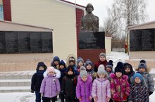 Авылыбызның истәлекле урыны - Бөек Ватан сугышында һәлак булган батырлар өчен куелган һәйкәл янында батырларны искә алу .