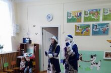 Балалар бакчасында кабаттан Кыш бабай белән Кар кызы.