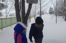 Кошларга ярдәм иттек. Җимлекләргә җим салдык. Кошлар бергәләп килеп ашап киттеләр. Без аларны тәрәзәдзн күзәттек.