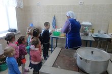 Балалар пешекче һөнәре белән таныштылар. Тәмле ризыклар пешерүче Мәүлия апаның эш урынында булдылар.