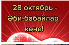 28 нче октябрь- эби-бабайлар көне. Хөрмәтле әби-бабайлар! Сезгә хәерле озын гомер, җан тынычлыгы,балаларыгызның һәм оныкларыгызның кадер- хөрмәтендә яшәргә язсын сезгә.