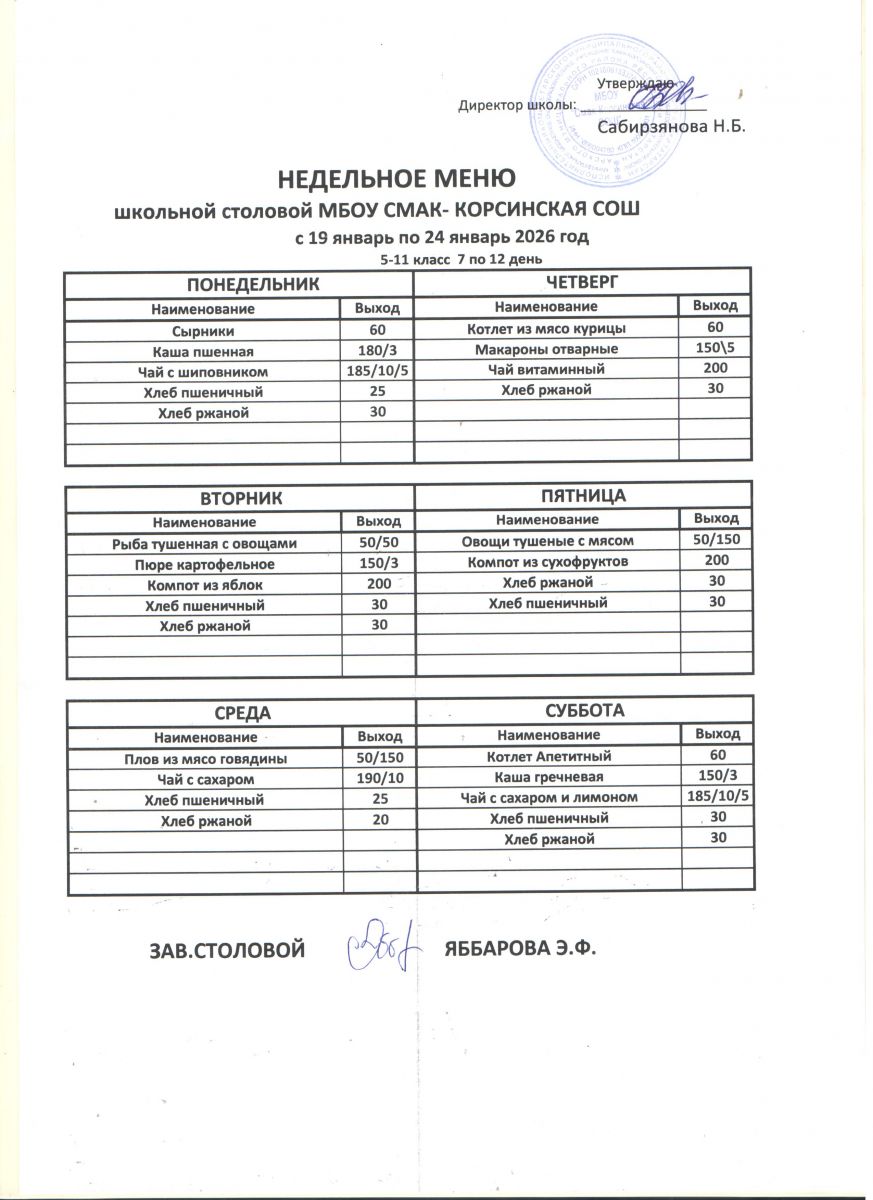Меню на 19 января - 24 января 2026 года для 5-11 классов