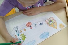 Продолжали учить детей рисовать по мативам народных сказок. Вызвали интерес к созданию образа колобка который катится по дорожке и поет песенку. Воспитывали интерес к отражению впечатлений и представлений о сказочных героях в изобразительной деятельности.