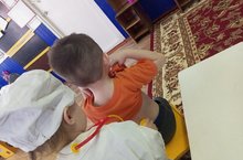 Сюжетно-рлевая игра "Доктор", где дети более подробно узнали о профессии врачами. Дети сами придумывали сюжет и обыгрывали ее сами.