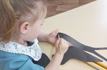 На занятии по конструированию дети изготовили обьемную фигуру "Скорец". Задачами занятия были закреплять умения детей по вырезанию деталей, склеиванию их между собой.