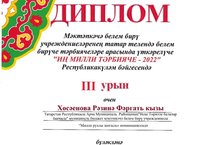 Безнең балалар бакчасы тәрбиячесе Рәзинә Фәргать кызы республикакүләм "Иң милли тәрбияче" конкурсында катнашып 3 урынга лаек булды. Ихлас күңелдән тәрбиячебезне котлыйбыз. Бары бәхетләр, уңышлар һәм иҗади биеклекләр,Рәзинә апабыз!