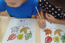 Закрепили умения разукрашивать осенние листья,используя разные цвета и приемы работы кистью.