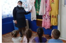 Тәрбиячебез Рәзинә Фәргать кызы “Халкыбызның милли киемнәре” дигән темага бик кызыклы, мавыктыргыч әңгәмә үткәрде.Балаларны милли киемнәр, аларның үзенчәлекләре, кагыйдәләре белән якыннан таныштырды.·Милли киемнәрнең үзләренә генә хас булган үзенчәлекләрен ачыкладылар, төсләрнең берләшүенә игътибар иттеләр. Халкыбызның милли киемнәр, милли традицияләре, йолалары, көнкүреш тормышы турында алган мәгълүматларны ныгыттылар.