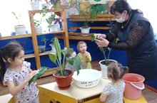 Наш педагог Разина Фаргатовна начинает обучение детей простейшим навыкам ухода за комнатными растениями: поливать, рыхлить и опрыскивать, проводя ряд занятий познавательного характера и в целях воспитательной работы, направленной на привитие любви, заботы и гуманного отношения к природе. -