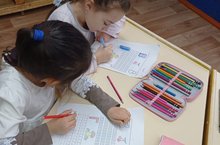 Балалар «г» авазы һәм Г г хәрефләре белән таныштылар. Сүздән авазны интонация белән аерып алу, аны калынлыгын, нечкәлеген саклап, башка авазлардан аерып әйтү күнекмәсен үстерү өстендә эшләделәр, интеллектуаль биремнәр үтәделәр. Тартык авазның калын һәм нечкә әйтелешен ачыклау ысулын куллану күнекмәсен камильләштерделәр.