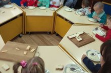 "Кошлар - безнең дуслар" дип исемләнгән апликация дәресе үткәрдек. Ата - аналарга күренә торган почмакка урнаштырып, балаларның эшләре белән ата -аналарның ни дәрәҗәдә кызыксынуына игътибар бирдек. Ата - аналарга киңәш: балалары, аларның эшләре белән ныграк кызыксыннар иде.