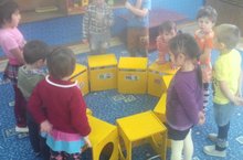 Бурычлар:1.Тәрбияче тарафыннан хәзерләнгән төрле формадагы, зурлыктагы һәм төрле төстәге кисәкләрне кәгазьгә алдан таратып салырга һәм билгеле бер тәртиптә тезү күнекмәсен үстерү.