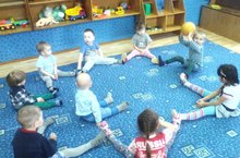 На занятиях физкультуры мы научились играть с обручем, соблюдать дистанцию,слушать команды воспитателя.