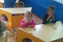 Яңа гына балалар бакчасына ияләнеп килүче 1 нче кечкенәләр төркеме - менә шулай үзләренең иптәшләрен каршы алалар.