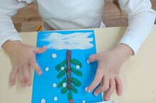 Балалар белән ике уч төбендә тәгәрәтеп пластилиннан кисәкләр әвәләдек хәм шул кисәкләрне тоташтырып чыршы ясаарга өйрәндек,кечкенә шарчыклар әвәләү кунекмәләрен дә ныгыттык.