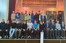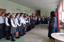 Новая учебная неделя началась с торжественной церемонии поднятия флага Российской Федерации и Республики, а также исполнения гимнов. Право вынести флаг дано активистам, а также победителям районных олимпиад - Альмиевой Эвелине и Комарову Руслану, ученикам 9В класса.