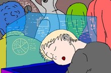 Ученик 1Б класса Шакиров Адель принял участие в районном конкурсе цифровых рисунков "Мой цифровой Татарстан" для будущих первоклассников. Тема рисунка в том, что в будущем в основном работают машины. Спящий ребенок включил некое устройство записывающее информацию. Придя домой он прочтёт лекцию.