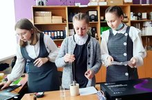 На занятии кружка «Занимательная физика» ( руководитель Гараева Диляра Ягфаровна) учащиеся 10 класса провели Всероссийскую лабораторную работу в честь 310-летия со дня рождения великого ученого М.В.Ломоносова из серии «Универсалиум».