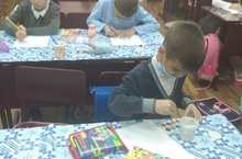 Бүген рәсем-сәнгать укытучысы Зинатуллина Л. Г. 1нче "В" сыйныф укучылары белән "Агачка буяу" дигән темага класстан тыш чаралар дәресен үткәрде. Укучылар халык рәссамнары әсәрләрендә сәнгатьчә белдерүнең үзенчәлекле чараларын яктырта алдылар, матрешкаларны чагыштырдылар. Укучылар рус халык агач уенчыклары турында сөйләштеләр, формалар һәм рәсемнәрнең үзенчәлекләре белән таныштылар. Матрешкаларның кәгазь силуэтларын буяуны өйрәнделәр. -